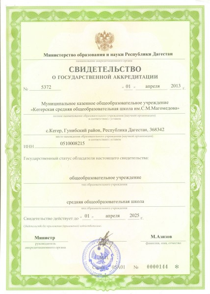 | Адрес местонахождения образовательной организации* | Республика Дагестан, Гунибский район, с.Кегер, 368342 |